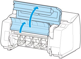 Ouvrez le capot supérieur et levez le guide d'éjection.