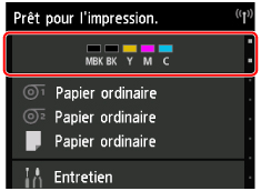 Sur l'écran tactile, vous pouvez vérifier la quantité d'encre restante dans la cartouche d'encre.
