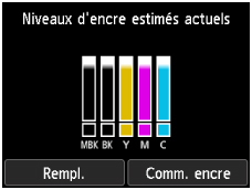 Remarque- Touchez Comm. encre pour afficher les informations sur le fournisseur d'encre.