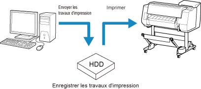 - Enregistrez des tâches d'impression sur l'imprimante.