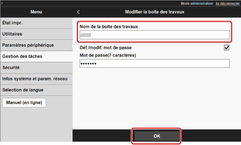 Entrez le mot de passe s'il est activé pour une zone d'enregistrement.