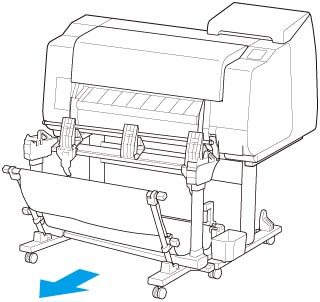 스태커를 스탠드와 함께 프린터 앞으로 이동한 다음 스태커 바닥 양쪽의 볼록한 부분(A)을 프린터의 스탠드에 닿을 때까지 밉니다.