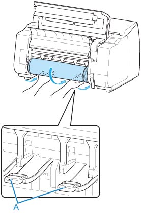 Если рулон бумаги не выровнен по центру, бумага может подаваться неправильно. В этом случае установите для параметра Автоподача рулона бумаги значение Выключить, а затем выполните подачу рулона бумаги.