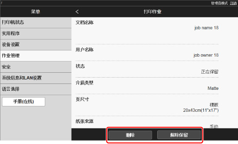 选择作业管理上的删除所有打印作业可以删除作业队列中的所有作业