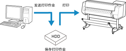 要保存来自打印机附带的打印机驱动程序或应用程序以外的软件或系统的打印作业,请使用操作面板指定输出方法并选择保存打印数据后用于打印的设置。