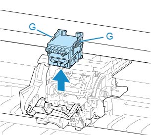 Remova a cabeça de impressão pela alça (G) e depois toque em OK.