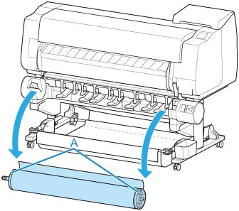 Halten Sie den Rollenhalter an den Flanschen (A), und entnehmen Sie ihn aus der Rollenhalternut.