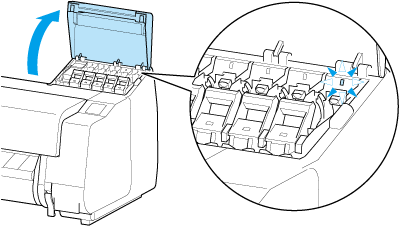 Öffnen Sie die Abdeckung für die Tintenbehälter, und überprüfen Sie die Anzeige für Tintenbehälter.
