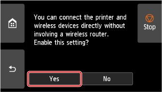 Asegúrese de que el nombre que aparece en la pantalla táctil es el mismo que el de su dispositivo compatible con Wi-Fi Direct y seleccione Sí (Yes).