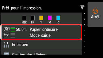 Sélectionnez la zone d'affichage des paramètres du papier sur l'écran Accueil.