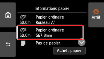 Sélectionnez la zone d'affichage des paramètres du papier sur l'écran Accueil.