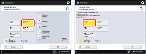 Sélectionnez PDF ou JPEG.