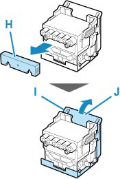 - Il se peut qu'il y ait de l'encre autour des buses de la tête d'impression que vous retirez. Manipulez la tête d'impression avec précaution lors du remplacement. L'encre peut tacher les vêtements.