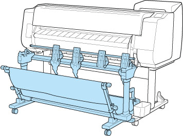롤 용지 유닛을 사용하는 경우, 롤 용지 유닛과 함께 제공된 설치 가이드를 참조하여 롤 용지 유닛을 스탠드에 장착합니다.