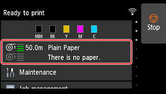 Se você selecionar Não (No), a operação terminará aqui. Carregue o papel na unidade em rolo ao executar a impressão. Porém, nesse caso, é necessário carregar o papel durante a impressão, de maneira que as instruções não sejam exibidas na tela sensível ao toque.