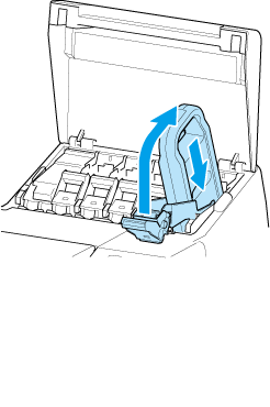 Puxe a alavanca de bloqueio do cartucho de tinta para cima.
