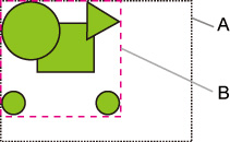 - Faixa de desenho da imagem especificada por comando (quando DESATIVADO (OFF) ou Prioridade de comando (Command priority) é selecionado para Detectar tamanho da Imagem (Detect image size))