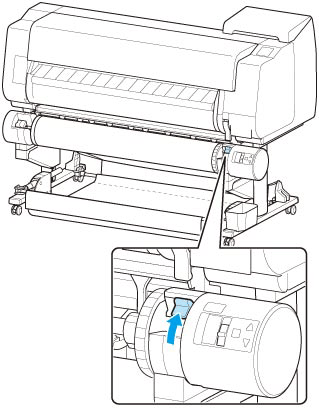8. Переведите переключатель Фиксатор держателя рулона на блоке рулона в положение разблокировки.