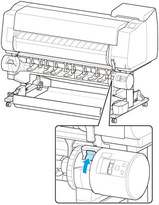 向内卷动时,可以用手臂按住卷纸防止卷动的纸张松开。 但是,这么做可能会在纸张上留下压痕。 在这种情况下,点击介质信息显示区域的卷纸单元区域,并将纸张保留设置设置为解除保留。