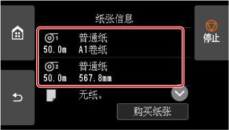 点击或触摸送纸或卷回,并将纸张前端与位置(A)对齐。