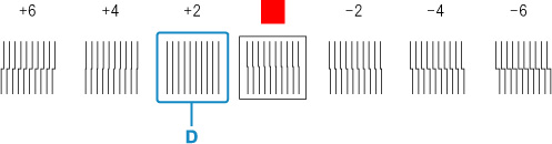 示例2:将倾斜调整杆移动到错位最小的两组线条的编号之间或者编号与正方形标记(E)之间的位置。 在这种情况下,选择-1。