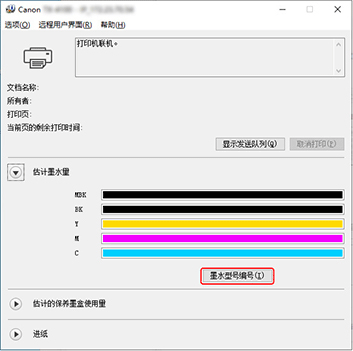 选择墨水型号编号信息。