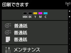 用紙をセットしてください。(「ロール紙をセットして印刷する」参照)(「カット紙をセットして印刷する」参照)