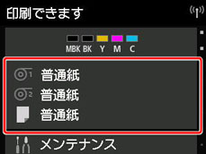 • カット紙を使用する場合、用紙セット前に印刷ジョブを送信すると、印刷ジョブで設定した用紙種類に更新されます。