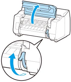 リリースレバーを上げているときは、プラテンの用紙吸着力を調整することができます。用紙をセットしにくいときは、タッチスクリーンの[吸着力]をタップして、吸着力を調整してください。吸着力は5段階で調整できます。
