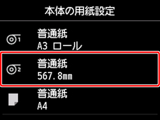 1. タッチスクリーンのホーム画面で、用紙設定表示部をタップする
