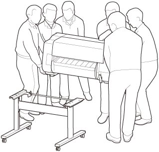 プリンターを持ち運ぶときは、必ず6人以上で左右から持ち、腰などを痛めないように注意してください。