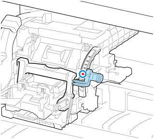 リニアスケール(A)、キャリッジシャフト(B)、インクチューブスタビライザー(C)には触れないでください。触れると故障の原因になります。