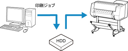 印刷ジョブを、プリンターのハードディスクの一時保存領域に保存しながら印刷を行います。