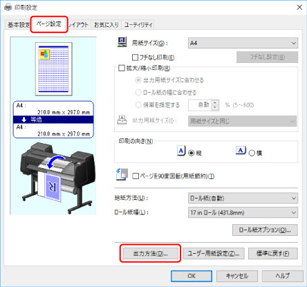 3. 出力方法]をクリックし、[出力方法]ダイアログボックスを開く