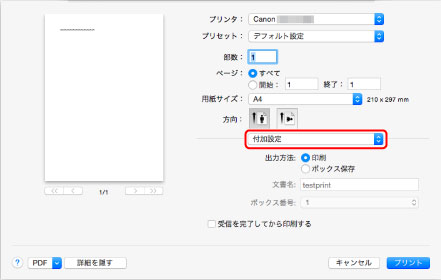 印刷]のオプションとして選択できます。印刷ジョブの受信が途切れて、印刷が中断することで発生する、印刷品質の低下を防ぐことができます。