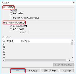 6. OK]をクリックし、[出力方法]ダイアログボックスを閉じる