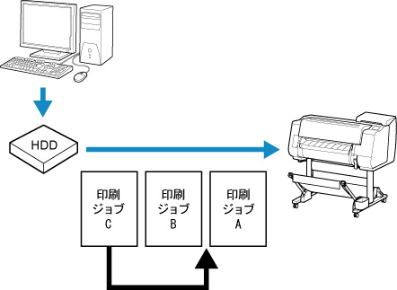 プリンターで処理実行中の印刷ジョブをジョブキューと呼びます。ジョブキューは、削除または優先印刷ができます。