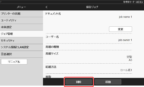 プリンターのハードディスクに保存されているジョブ(保存ジョブ)は、削除できます。