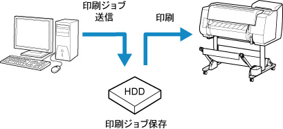 - 印刷と同時に一時的に印刷ジョブを保存し、印刷後に印刷ジョブを消去します。