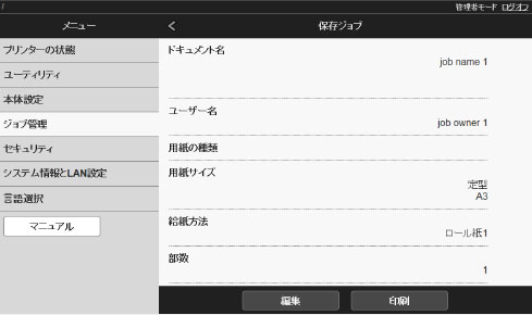 プリンターのハードディスクに保存されているジョブ(保存ジョブ)の詳細を表示できます。