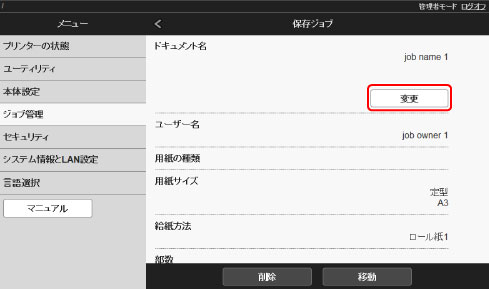 プリンターのハードディスクに保存されているジョブ(保存ジョブ)の名前を変更できます。