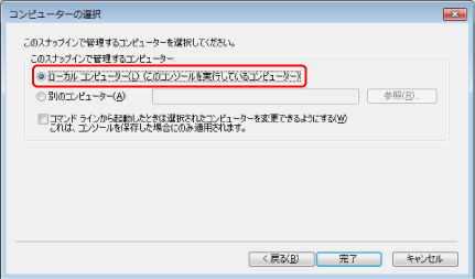 [コンピューターの選択]画面で[ローカルコンピューター]を選び、[完了]をクリックします。