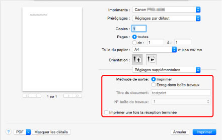 Effectuez l'impression en enregistrant la tâche d'impression sur la zone de stockage temporaire du disque dur de l'imprimante.
