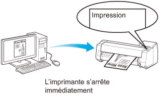 Lorsque vous appuyez sur le bouton Arrêt pendant l'impression, le fonctionnement de l'imprimante varie en fonction de l'état actuel.