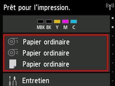 Touchez la zone d'affichage des paramètres papier sur l'écran Accueil de l'écran tactile.