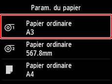 Si vous touchez la zone d'affichage des paramètres de papier, puis la zone