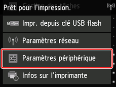 Touchez Paramètres périphérique sur l'écran Accueil de l'écran tactile.