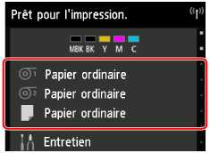 Touchez la zone d'affichage des paramètres de papier sur l'écran ACCUEIL.