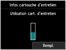 La cartouche d'entretien absorbe l'excès d'encre issu du nettoyage de la tête d'impression. Vous pouvez connaître la capacité restante de la cartouche d'entretien en consultant l'écran tactile.