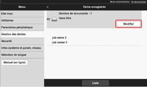 Sur la page Menu, sélectionnez Gestion des tâches.